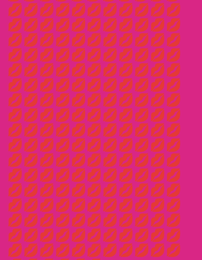 repeated pattern of orange lip prints on a magenta background