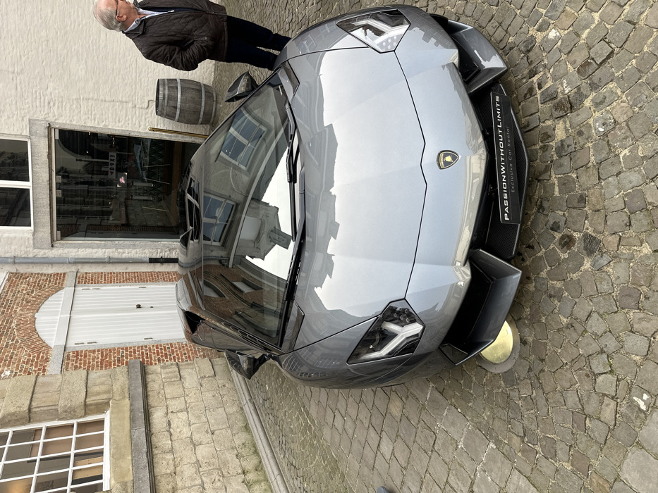 - "A gray Lamborghini Aventador S Roadster is centrally parked on a cobblestone street" by FM-MHDnZ2, licensed under CC BY 4.0