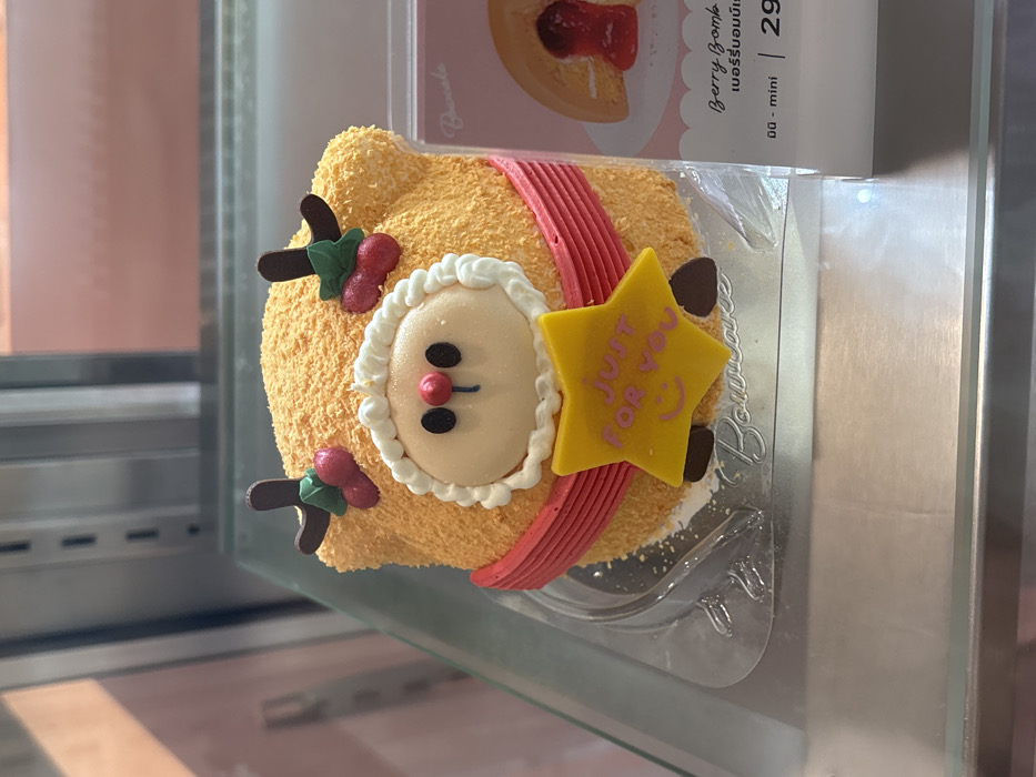 - "A small, square-shaped cake, decorated as a reindeer, is displayed within a glass refrigerated case" by FM-dtTm02, licensed under CC BY 4.0