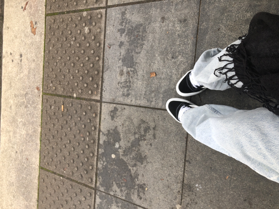 - "The image depicts a first-person, downward-facing view of an individual's legs and feet on a paved urban surface in Schiltigheim, France" by FM-vXe4F3, licensed under CC BY 4.0