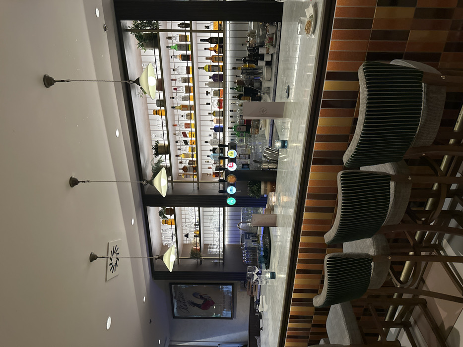 - "A bar interior features a long counter with tiled decor, lined with three upholstered bar stools" by FM-6uJGr1, licensed under CC BY 4.0