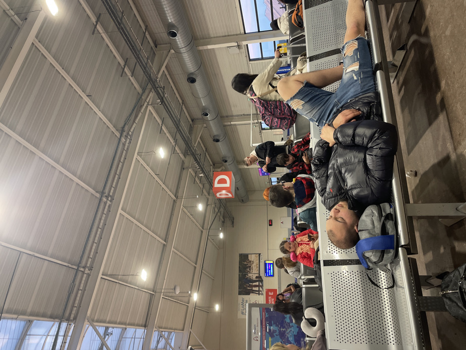 This image depicts an indoor waiting area at Beauvais–Tillé Airport in Tillé, France