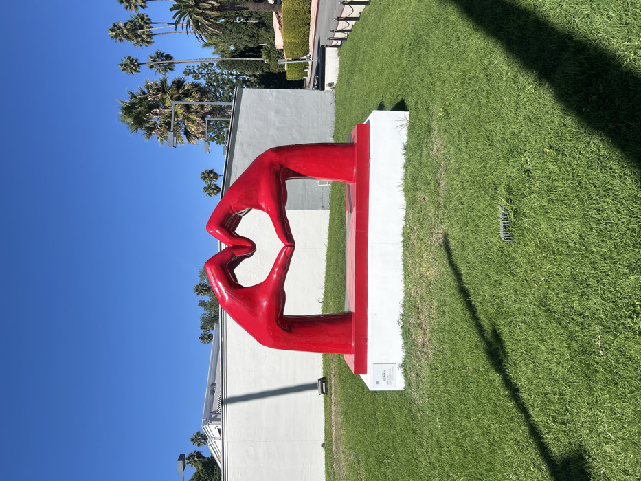 - "This image depicts a large-scale, glossy red sculpture of two hands forming a heart shape, positioned centrally on a meticulously maintained lawn" by FM-JqEJc2, licensed under CC BY 4.0