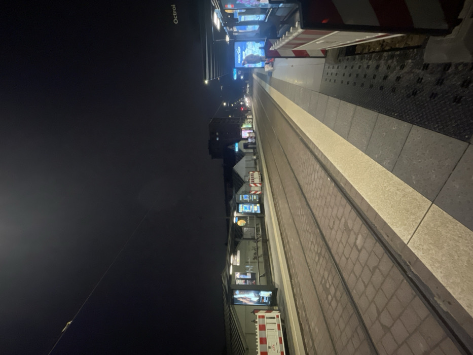 - "A nighttime, tilted view shows a tram stop platform illuminated by advertisements" by FM-I7A9K2, licensed under CC BY 4.0