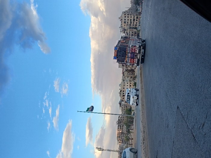 - "The image depicts a street scene in Zamalka, Syria, under a partly cloudy sky during daylight, likely late afternoon or early morning" by FM-hmmxi2, licensed under CC BY 4.0