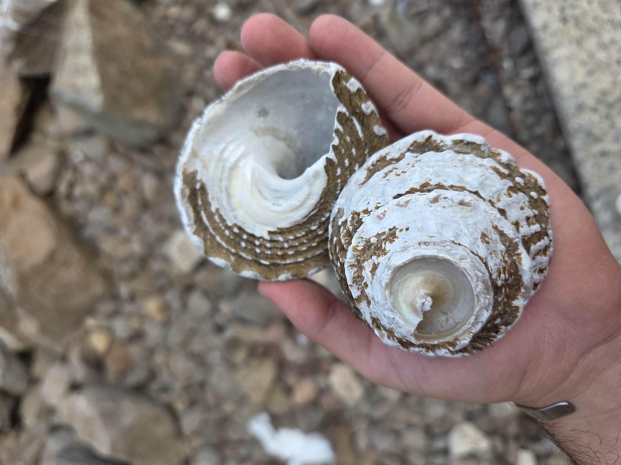 - "A hand holds two white and brown turbo shells" by FM-G9nTm2, licensed under CC BY 4.0