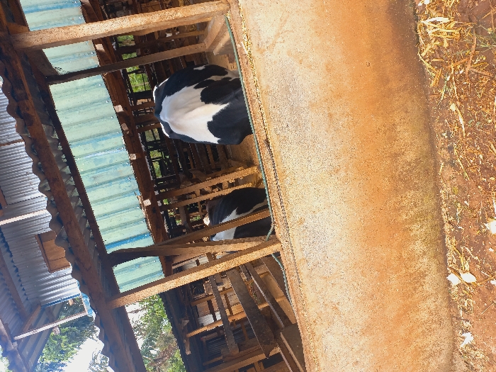 - "Inside a wooden-framed structure with a corrugated metal roof, two black and white cows stand" by FM-7o2ru2, licensed under CC BY 4.0