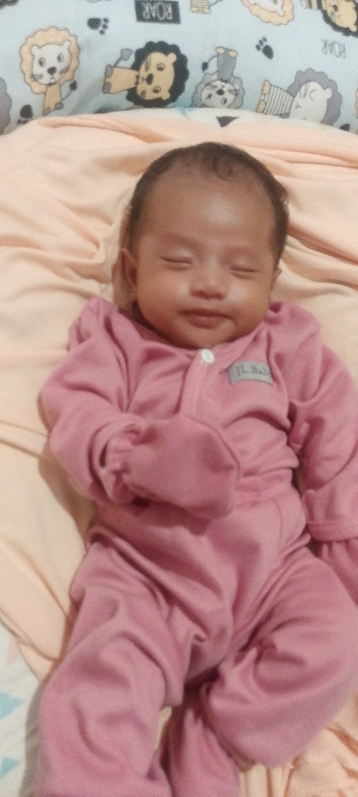 - "A sleeping baby wearing a pink onesie lies on a peach-colored blanket" by FM-uqdn02, licensed under CC BY 4.0