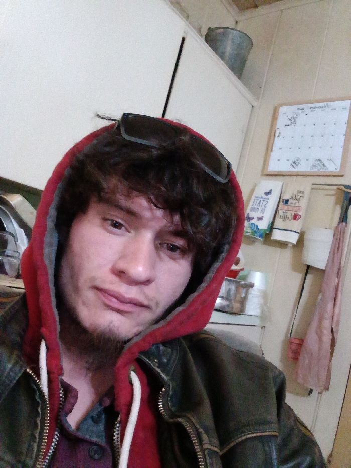 - "A person with dark curly hair and a light complexion wears a red hoodie and a dark leather jacket" by FM-j8lDL2, licensed under CC BY 4.0