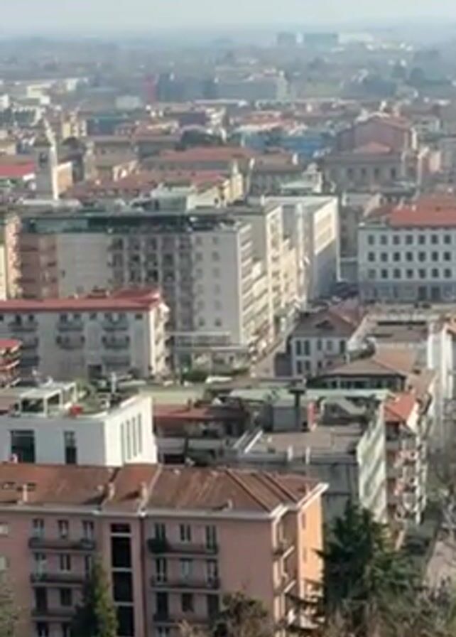 From a high vantage point, the video showcases a sprawling cityscape under a clear, bright sky