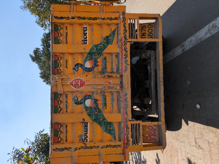 - "The image displays the rear view of a stationary yellow truck, likely a goods carrier, parked on an asphalt road under a clear blue sky in Tiruvannamalai, India" by FM-M0G9X2, licensed under CC BY 4.0
