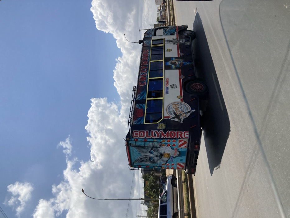- "A customized blue, white, and dark-colored "matatu" (public transport minibus) with extensive graffiti art travels on a multi-lane asphalt road under a partly cloudy blue sky in Gatongora ward, Kenya" by FM-74sbw2, licensed under CC BY 4.0