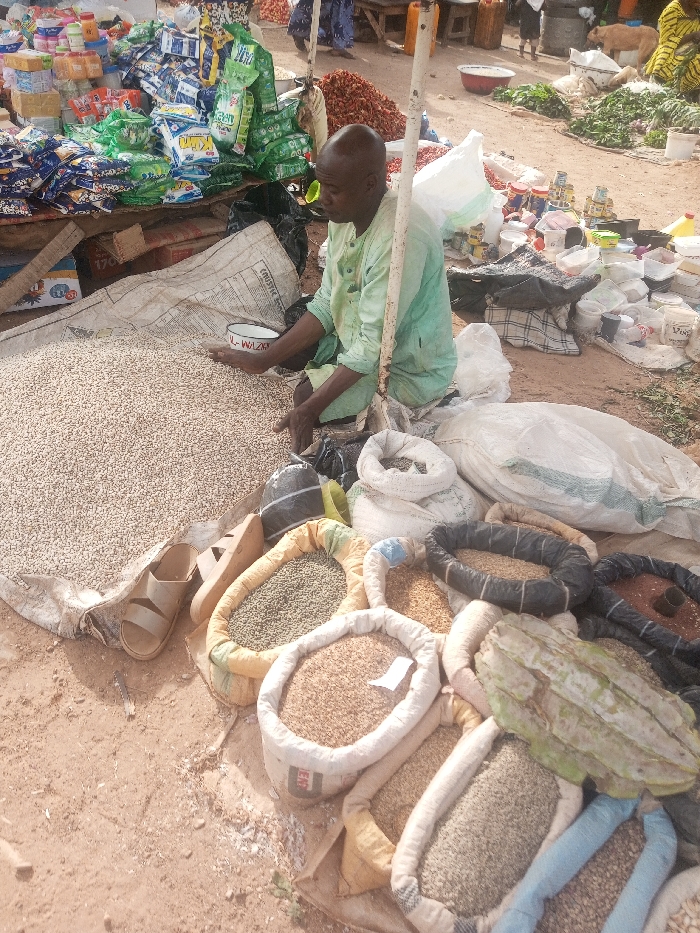 This image depicts an outdoor market stall in Kakuri Gwari, Nigeria