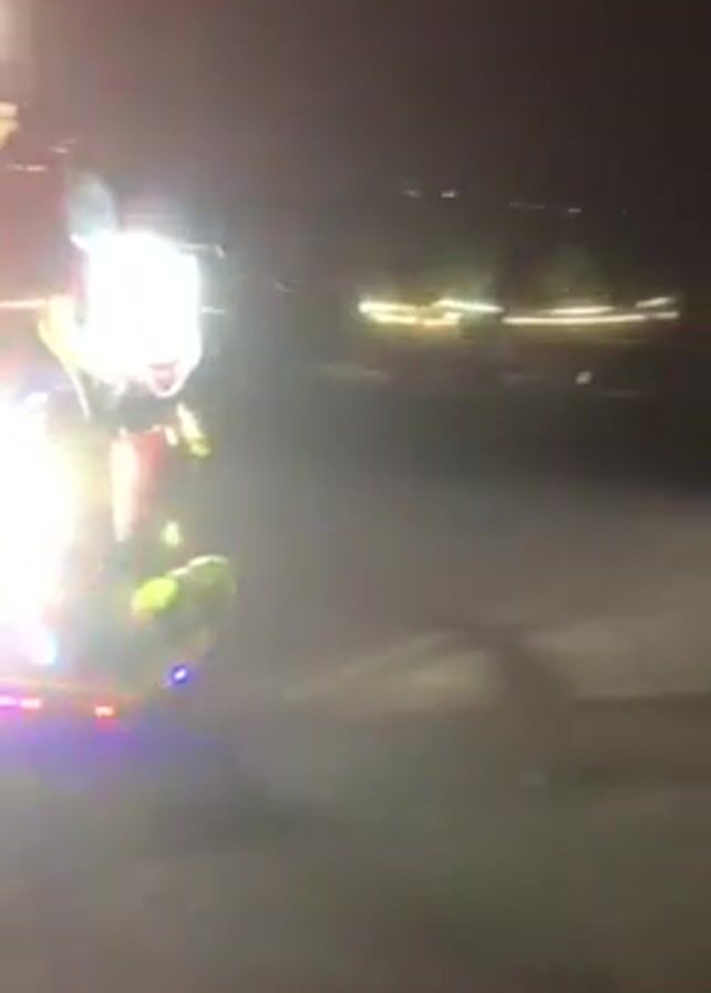 decorated vehicle, possibly a truck or auto rickshaw, at night. It is heavily adorned with bright, colorful lights - red, white, blue, green, and purple. The lights flash and change colors. There is also a flag, potentially of Saudi Arabia, visible on the vehicle. Other vehicles and distant lights appear in the background. The camera moves around, capturing different angles of the brightly lit vehicle. The audio includes music.