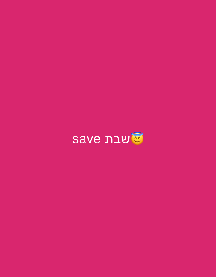 The image presents a solid fuchsia background. Centered on this background is white text displaying the word "save", followed by the Hebrew word "砖讘转" (Shabbat), and then a smiling face with a halo emoji (馃槆). No individuals, additional objects, specific actions, or interactions are visible within the frame. The specified location for this scene is the city of Lod, Israel.