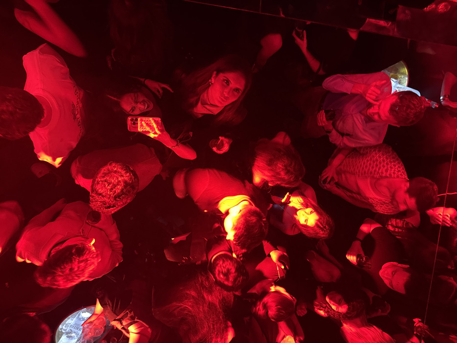 - "A high-angle shot captures a group of people in a dimly lit, red-toned environment, resembling a club or bar" by FM-NVhht2, licensed under CC BY 4.0