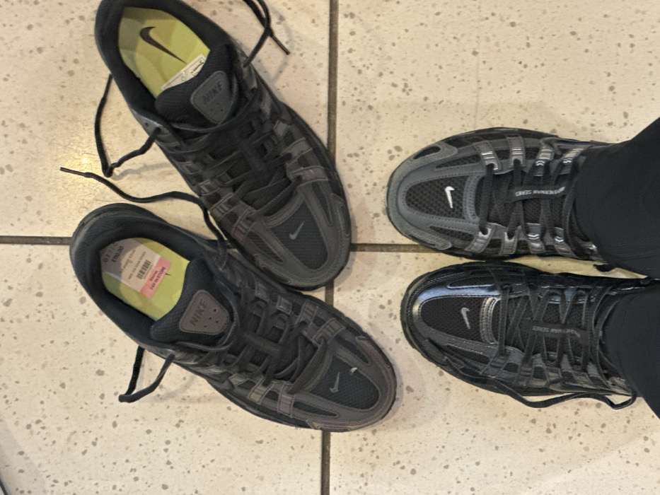 - "The image depicts four black Nike athletic shoes on a light-colored, speckled tiled floor with dark grout lines" by FM-13LyK2, licensed under CC BY 4.0