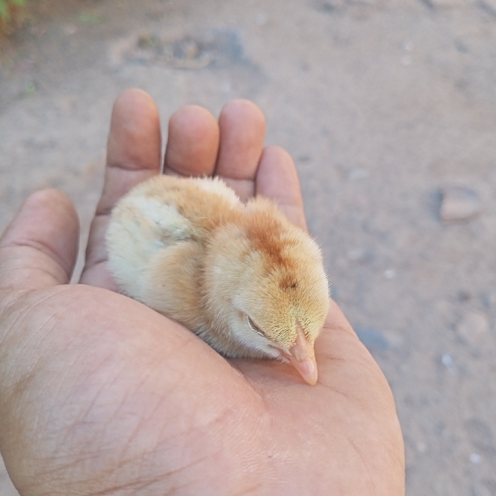 - "A light-skinned adult left hand, with fingers slightly curled, cradles a small chick in its palm" by FM-cHJi83, licensed under CC BY 4.0