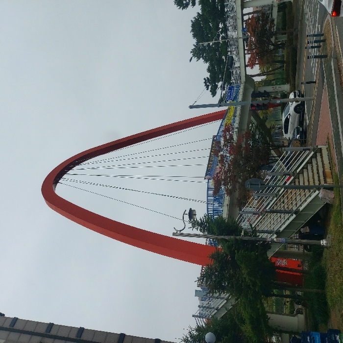 - "The image depicts a red arched pedestrian overpass spanning a multi-lane road in Gimpo-si, South Korea, under an overcast sky" by FM-xMf1b2, licensed under CC BY 4.0