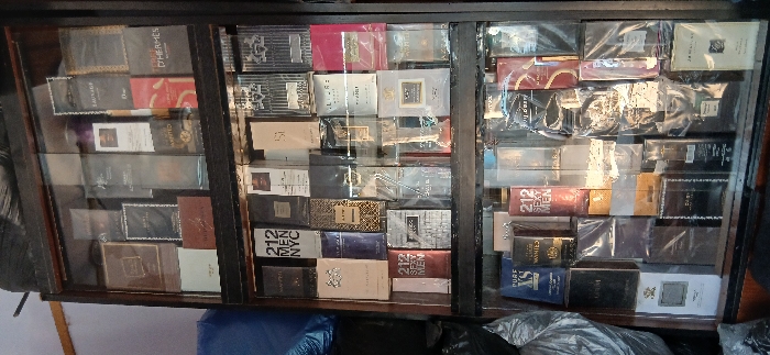 - "A vertical image depicts a wooden retail display cabinet with glass doors, stocked floor-to-ceiling with various boxed perfumes in Sabon Gari South, Nigeria" by FM-DHzUs1, licensed under CC BY 4.0