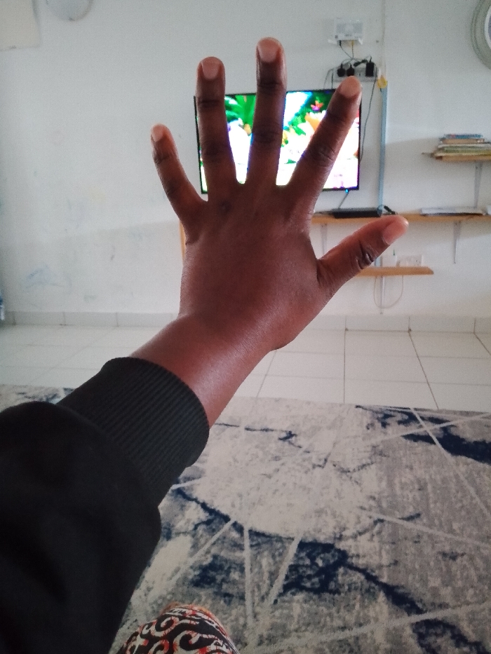 - "The image depicts an indoor scene in Olkeri ward, Kenya, dominated by a human left forearm and open hand in the foreground" by FM-7BPtQ2, licensed under CC BY 4.0
