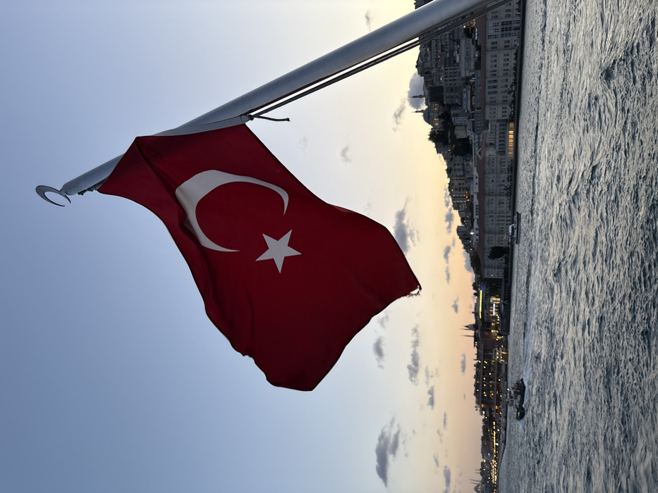 - "The image displays the Turkish national flag, red with a white star and crescent, unfurled from a silver-colored flagpole positioned in the foreground" by FM-E1hwL2, licensed under CC BY 4.0
