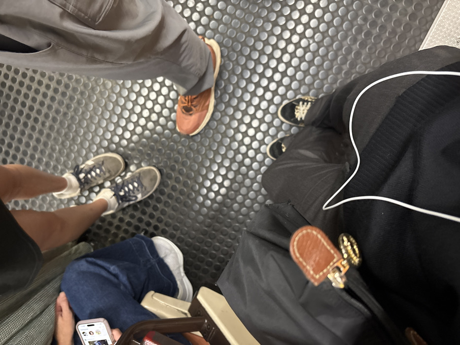 - "The image depicts an overhead view of multiple individuals' lower bodies and feet within a Madrid Metro train car" by FM-y5FNm2, licensed under CC BY 4.0