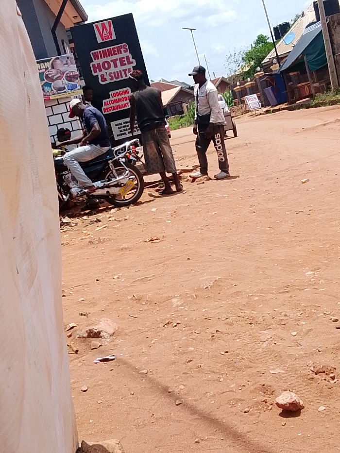 - "The scene depicts an outdoor, unpaved reddish-brown dirt road in Agbor, Delta State, Nigeria, identified by a prominent black sign for "Winner's Hotel & Suite" which lists "Agbor, Delta" in its address" by FM-3cXCI3, licensed under CC BY 4.0