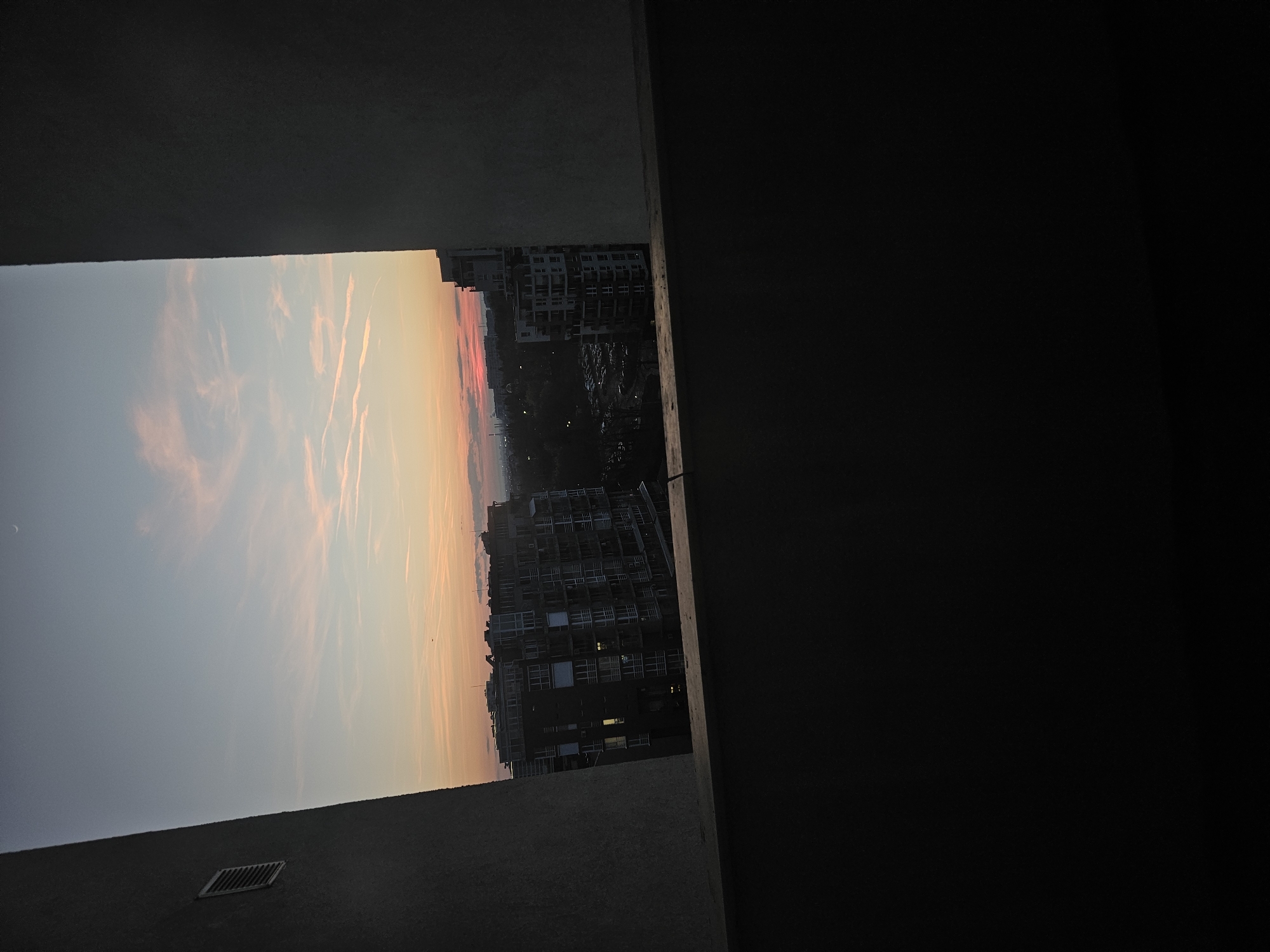 - "The image presents a view of a sunset sky with orange and pink hues, seen through an opening in a concrete structure, possibly a building or parking garage" by FM-TZLGv2, licensed under CC BY 4.0