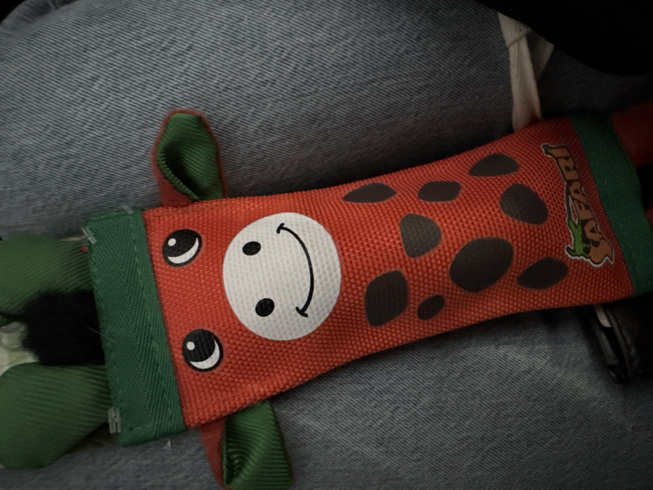 - "The image displays a red fabric toy, possibly a giraffe or similar spotted animal, resting against a light blue denim surface" by FM-dYjX22, licensed under CC BY 4.0
