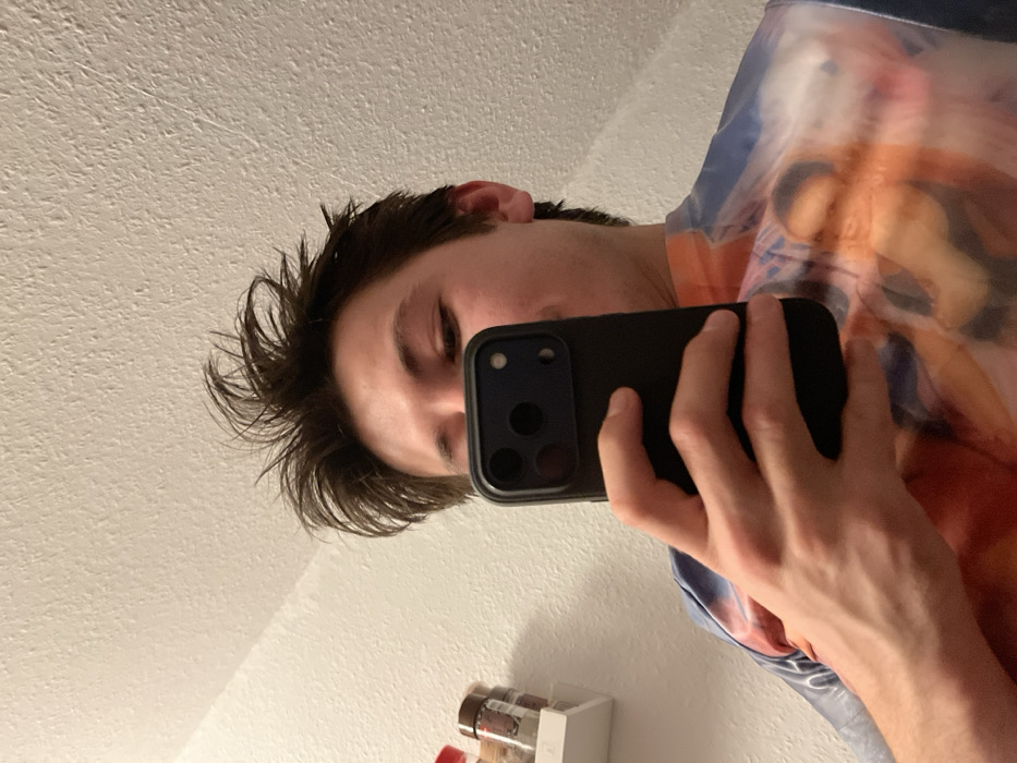 An individual is depicted in a close-up, low-angle indoor selfie in Heidelberg, Germany