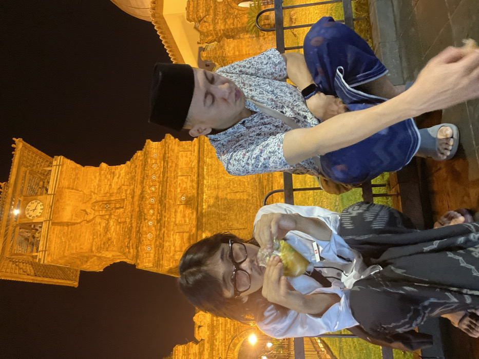 - "Two individuals are squatting at night in Kauman, Indonesia, against an illuminated architectural backdrop" by FM-12UHC3, licensed under CC BY 4.0