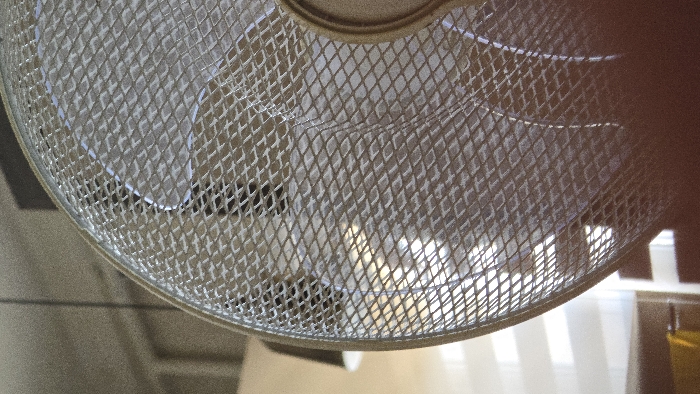 - "A close-up view of a white electric fan with a metal grill, positioned in an indoor setting" by FM-nqrq13, licensed under CC BY 4.0