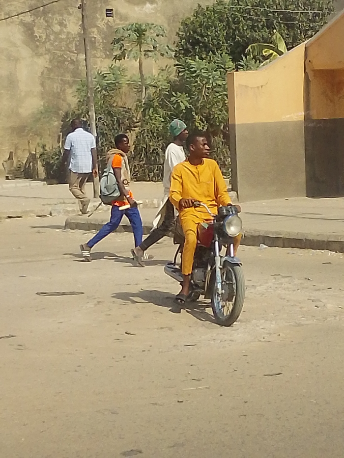 The scene depicts a daylight street environment in the city of Babban Giji, Nigeria