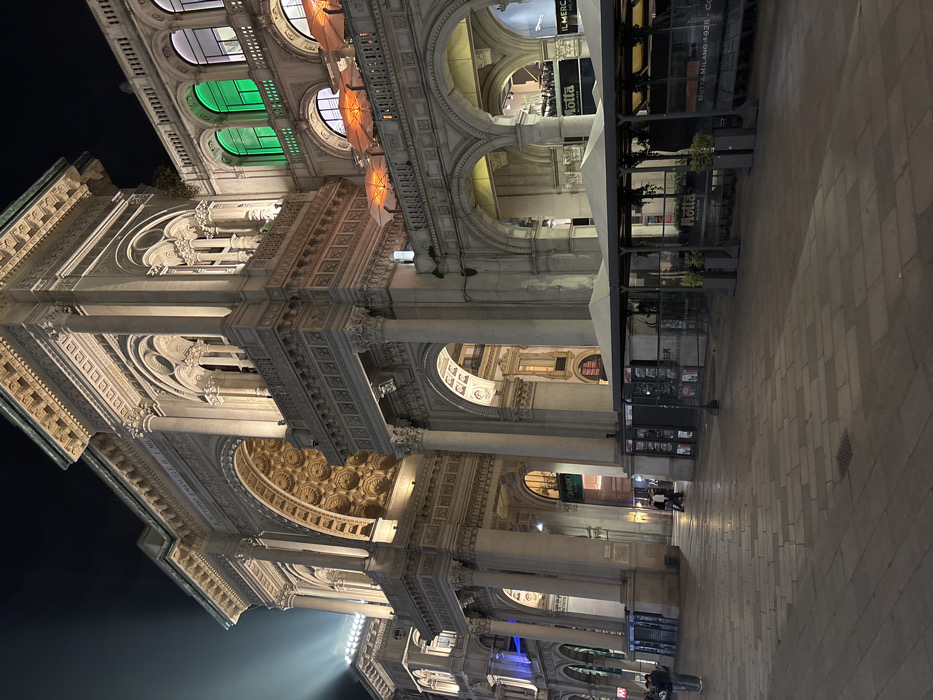 - "The image depicts the exterior of the Galleria Vittorio Emanuele II in Milan, Italy, at night" by FM-pgYyR2, licensed under CC BY 4.0