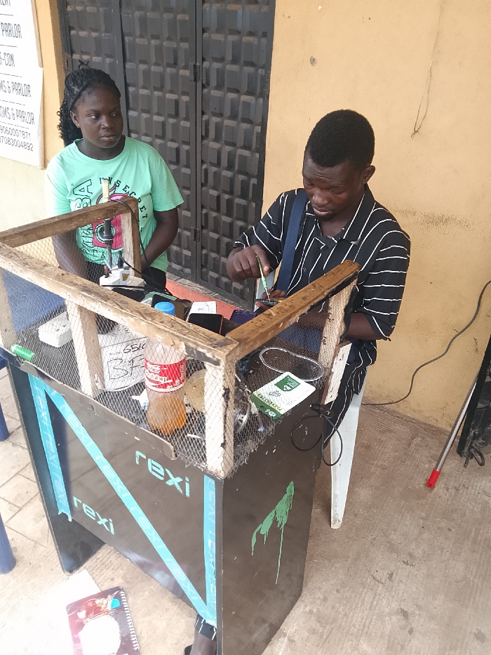 - "The image, set in Nsugbe, Nigeria, displays two individuals at a repair stall" by FM-2cBFK2, licensed under CC BY 4.0