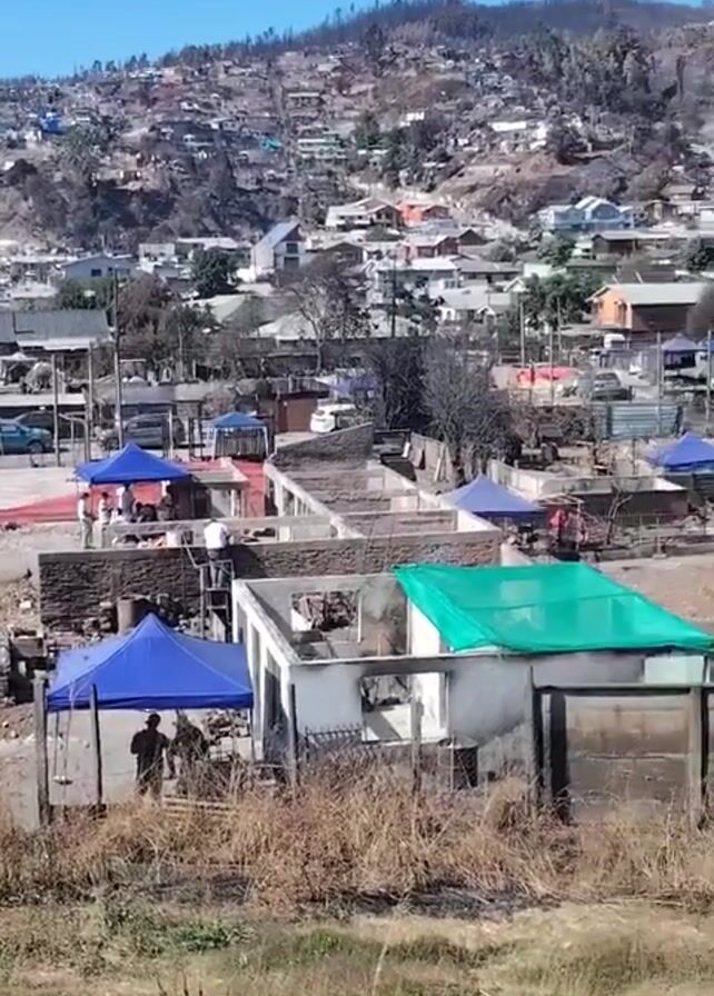aftermath of a fire in a town located on a hillside