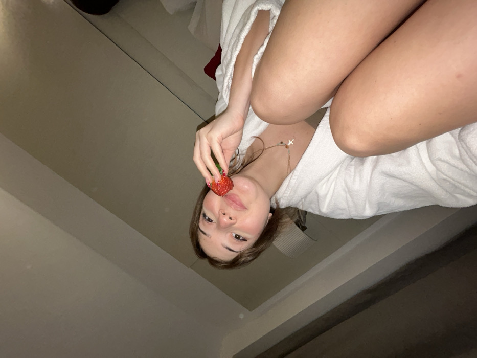 - "A woman in a white bathrobe holds a strawberry near her face" by FM-OYOfL2, licensed under CC BY 4.0