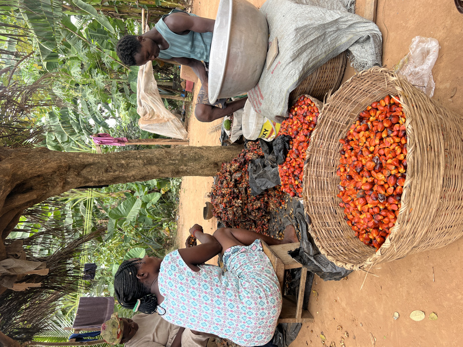 - "This image captures an outdoor scene in Woadze, Ghana, where individuals are engaged in palm nut processing under the partial shade of a large, mature tree with a thick central trunk" by FM-6dzJp2, licensed under CC BY 4.0