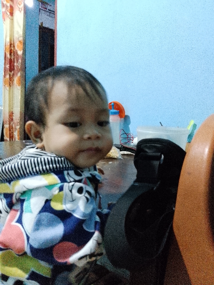 An infant is positioned indoors within a domestic setting in Kecamatan Pati, Indonesia