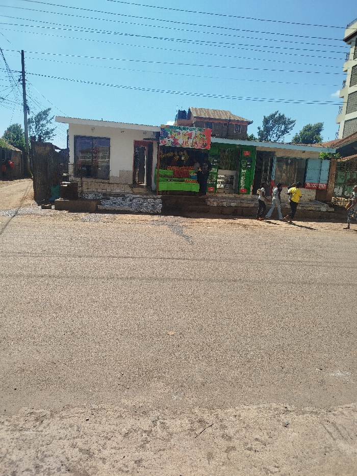 The image captures a street scene in Kihara ward, Kenya, under a clear blue sky