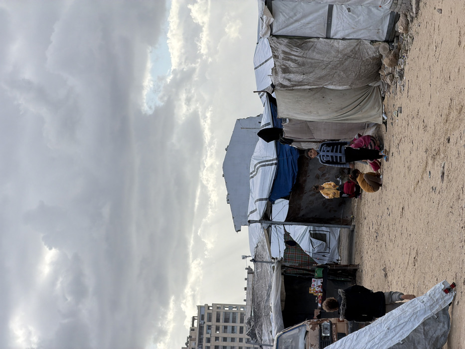 - "The image depicts a makeshift settlement in Gaza, Palestinian Territory, under a heavily clouded sky with scattered sunrays breaking through" by FM-PSI0J3, licensed under CC BY 4.0