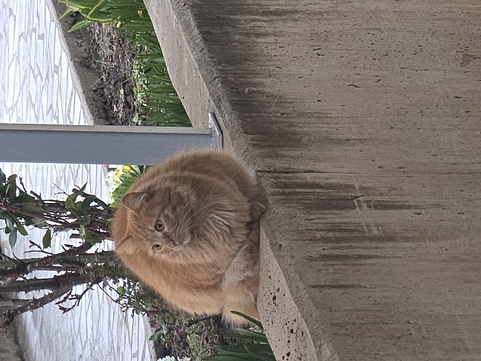 - "A long-haired, ginger-colored cat with amber eyes is depicted sitting compactly on a weathered concrete wall in Berkovitsa, Bulgaria" by FM-YPrW92, licensed under CC BY 4.0