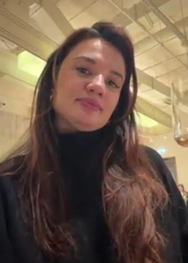 A woman with long brown hair is the primary subject of the video
