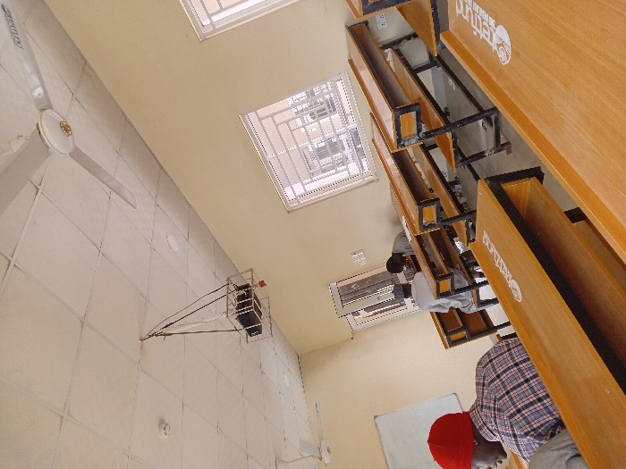 This image depicts the interior of a classroom or lecture hall located in Kwazailewa, Nigeria