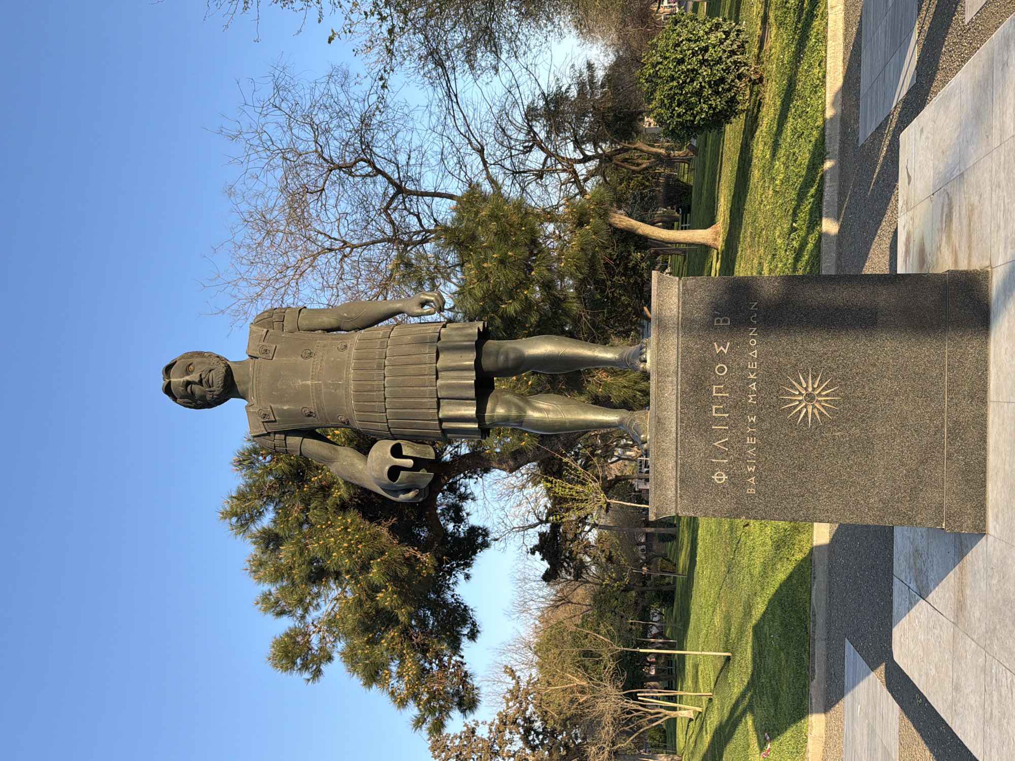 - "A bronze statue of Philip II of Macedon stands centrally on a dark granite pedestal in the Garden of Philip II, located within the Nea Paralia (New Waterfront) area of Thessaloniki Municipal Unit, Greece" by FM-Q1XvS2, licensed under CC BY 4.0