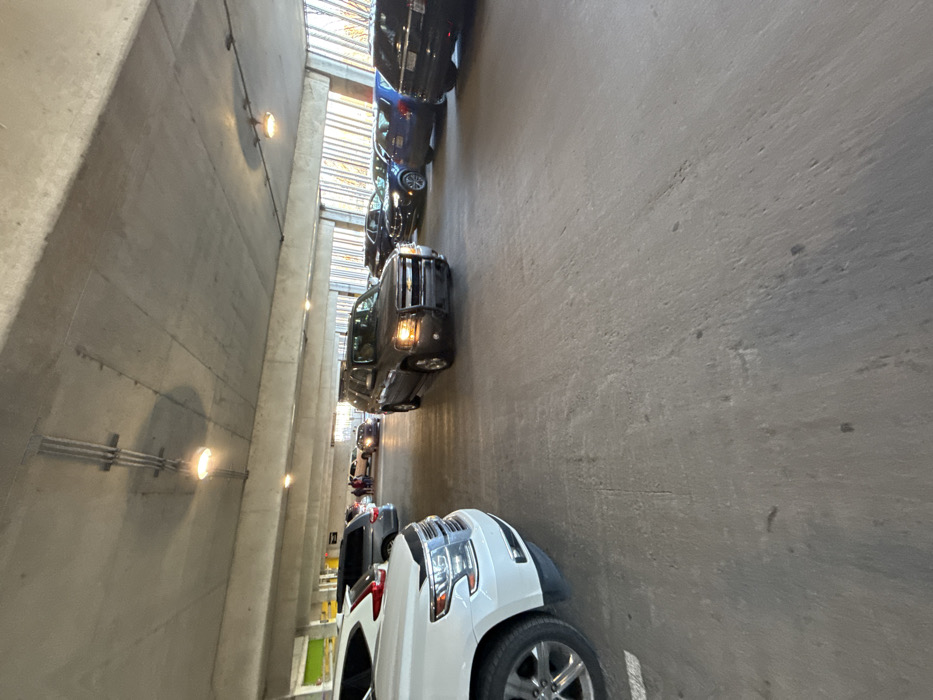 - "The image displays an interior scene within a multi-level concrete parking garage, consistent with the architectural style of garages found at The Ohio State University in Columbus, Ohio, United States, such as the Ohio Union South Garage or Ohio Stadium Garage, particularly noted by the distinctive exterior wall design featuring vertical, angled elements visible on the right, allowing natural light penetration" by FM-JRWws1, licensed under CC BY 4.0
