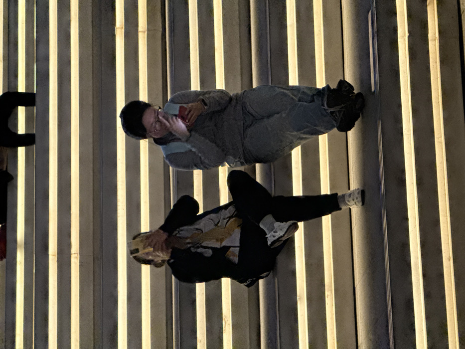 - "An outdoor, nighttime scene in Haizhu District, China, depicts two individuals seated on wide, illuminated concrete steps" by FM-Mlchq1, licensed under CC BY 4.0