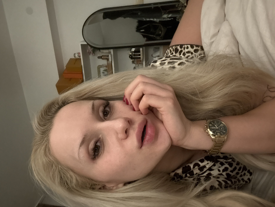 - "The image displays a fair-skinned female subject with long, wavy blonde hair, positioned indoors, likely on a bed covered with white bedding" by FM-4PuaE3, licensed under CC BY 4.0