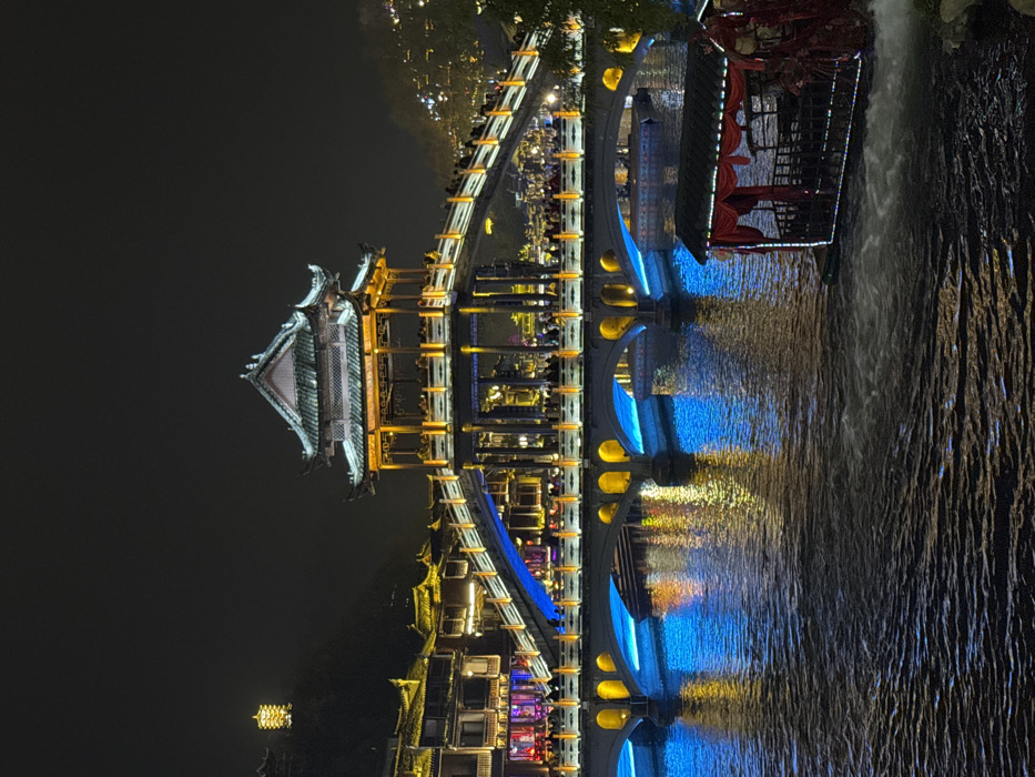 - "The image displays a nighttime scene in Fenghuang, China, dominated by a large, illuminated stone bridge crossing a river" by FM-7eaFY2, licensed under CC BY 4.0